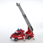 Der Aufbau des Sprinters verfügt über eine Pumpe mit Wassertank und sichtbarem Zylinderraum, aufwickelbaren Wasserschlauch, abnehmbare Schlauchhaspel, Schlauch mit Stahlrohr, vollfunktionsfähige Wasserspritze, ausfahr- und höhenverstellbare Drehleiter inkl. Rettungskorb, vier Stützblöcke zum herausziehen und herunterfahren sowie Ladebox und Seitenfach als Staumöglichkeit. Das Licht und Sound-Modul verfügt über vier Funktionen: Hupe, Motoren- und Sirenengeräusch, sowie Blinklicht. Maßstab 1:16.